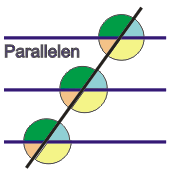 Schneidet eine Gerade mehrere Parallelen, so entstehen Stufenwinkel und Wechselwinkel. | ||||||